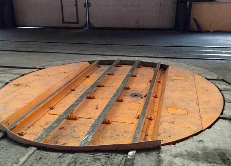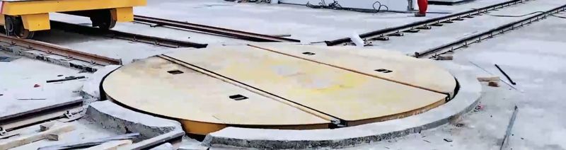 我公司生產(chǎn)的電動(dòng)換軌轉(zhuǎn)盤是一種能夠在90度轉(zhuǎn)彎的軌道上運(yùn)行的轉(zhuǎn)運(yùn)車。它的工作原理是:轉(zhuǎn)運(yùn)車運(yùn)行至電動(dòng)旋轉(zhuǎn)平臺(tái)上,通過手動(dòng)手動(dòng)或自動(dòng)旋轉(zhuǎn)電動(dòng)旋轉(zhuǎn)平臺(tái),與垂直軌道對(duì)接,使轉(zhuǎn)運(yùn)車可沿垂直軌道運(yùn)行,實(shí)現(xiàn)90度轉(zhuǎn)彎,它非常適用于裝備生產(chǎn)線的環(huán)形軌道、交叉軌道等工作場(chǎng)合。通過運(yùn)載車輛行駛到換軌轉(zhuǎn)盤上,轉(zhuǎn)盤轉(zhuǎn)過指定角度的軌道上,來實(shí)現(xiàn)任意角度交叉軌道的換軌操作,安裝自動(dòng)化定位裝置,實(shí)現(xiàn)平車平穩(wěn)的軌道對(duì)接,可通過自動(dòng)化定位裝置來調(diào)整對(duì)接軌道的角度來實(shí)現(xiàn)準(zhǔn)確對(duì)接,另外可以實(shí)現(xiàn)自動(dòng)化無人控制。